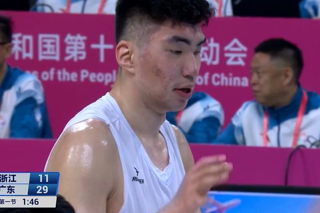 上半場廣東隊58比34領先。胡明軒10分,趙睿13分6籃板6助攻,沈梓捷五投全中10分。浙江隊余嘉豪9分5籃板,王奕博11分。