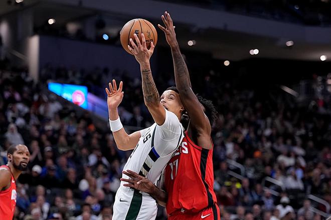 本場比賽中,雖然雄鹿最終輸?shù)袅吮荣悾乔蜿牭南劝l(fā)控衛(wèi)瑞安-羅林斯(Ryan Rollins)的表現(xiàn)還是相當(dāng)突出的。羅林斯全場出場30分07秒,投籃12中7,三分線外6中3,罰球3中2,得到了19分2籃板5助攻1搶斷的數(shù)據(jù),還有2次失誤和3次犯規(guī),正負(fù)值為-15。羅林斯雖然在防守端的貢獻(xiàn)度比較有限,并沒有起到很大的作用,但是他在進(jìn)攻端對于比賽的影響力也是有目共睹的。羅林斯展現(xiàn)出了全面的得分能力,他的持球進(jìn)攻能力出色,他的外線投籃也有著很高的穩(wěn)定性,他還具備不錯的傳球能力和組織能力。總體來看,羅林斯的表現(xiàn)雖然不算完美,但是他也確實是在進(jìn)攻端發(fā)揮出了自己的特點。只是球隊在戰(zhàn)術(shù)安排方面存在著明顯的問題,他們也是最終葬送了大好的局面。