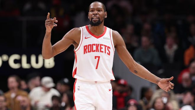 37歲的杜蘭特在加盟火箭隊的首個賽季里,依舊保持著頂級的“三級別得分手”水準。他出戰的比賽中場均貢獻26.5分、5.4個籃板和4.5次助攻,三項命中率分別達到51.4%、40.8%和88.6%。