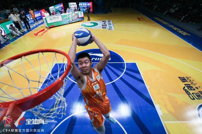 第三個出場的是預賽兩扣拿到100分滿分的遼寧本鋼球員俞澤辰。俞澤辰和隊友趙繼偉配合,趙繼偉將球拋到籃板側沿反彈后,俞澤辰接球背扣,這一扣創意拉滿,也得到了50分滿分。俞澤辰的第二輪扣籃壓力很大,因為他只有扣出50分才能追平張鼎巖的100分,把比賽拖入加賽。他仍然是和趙繼偉配合,趙繼偉將球拋到籃板上反彈后,俞澤辰接球轉身360度雙手扣籃,這一扣不論從配合的難度,還是扣籃的完成度都堪稱完美,最終俞澤辰得到50分滿分,比賽進入拖入加賽環節。