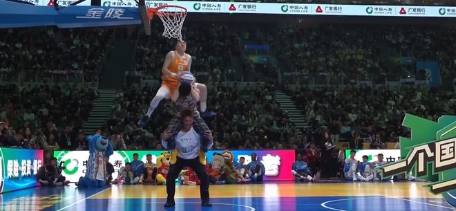 扣籃大賽最后一個亮相,劉禮嘉、外卡球員張鼎巖、余澤辰參加。第一個出場的是劉禮嘉,第一個扣籃拿到41分,第二個扣籃拿到41分,總分82分。第二個出場的是張鼎巖(外卡球員),他第一扣飛躍疊羅漢的兩人,用平筐反扣拿到50分;第二扣表演“蝎子擺尾”又拿50分。第三個出場的是俞澤辰,第一扣打側沿空接反扣拿到50分,第二扣空接轉體再拿50分,和張鼎巖進入加賽。