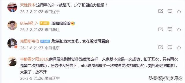余澤辰先別管動作難度怎么樣,人家基本全是一次成功,扣了五次,只有兩次是第二次扣成功,在這種大場面下,nba球員都很少一次或者兩次扣成功的,劉禮嘉絕對能扣,太緊了,放不開。