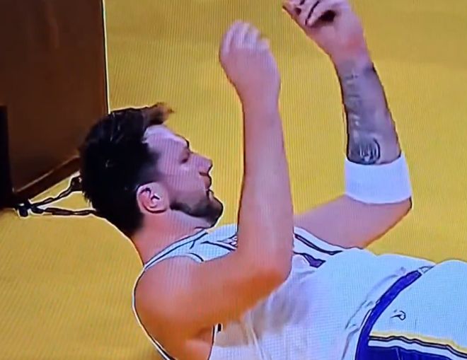 事件發生在周一湖人戰勝紐約尼克斯的比賽第三節。當時東契奇被尼克斯后衛沙梅特搶斷,隨后在快攻中試圖造迪亞瓦拉進攻犯規,卻被吹罰阻擋犯規。他躺在地上時,盯著裁判做出了手指搓動的“數錢手勢”。