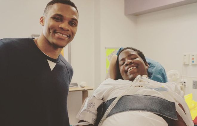 威少把兩次全明星MVP獲得的汽車,全都捐給了有需要的家庭。他經(jīng)常去兒童醫(yī)院,曾為一位13歲的四肢癱瘓男孩實現(xiàn)圣誕愿望。