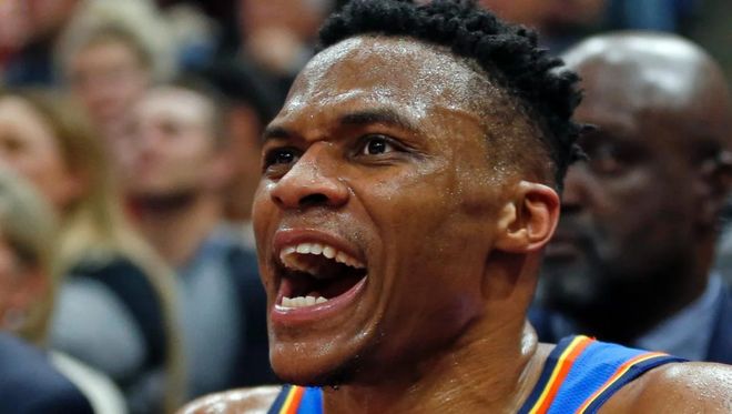 三月一場比賽結(jié)束后,威斯布魯克坐在發(fā)布臺上,表面上一副滿不在乎的樣子,注意力似乎還在手機充電器上,而不是面前的媒體。當(dāng)時國王輸給了實力不濟的鵜鶘隊,戰(zhàn)績跌至14勝50負,聯(lián)盟墊底。就在他準(zhǔn)備回答相關(guān)問題時,那層冷漠的偽裝瞬間消失。