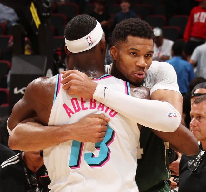 兩位全明星彼此高度尊重。在阿德巴約對(duì)陣奇才狂砍83分(NBA歷史第二高分,僅次于張伯倫100分)后,字母哥是最堅(jiān)定為他發(fā)聲的人之一。