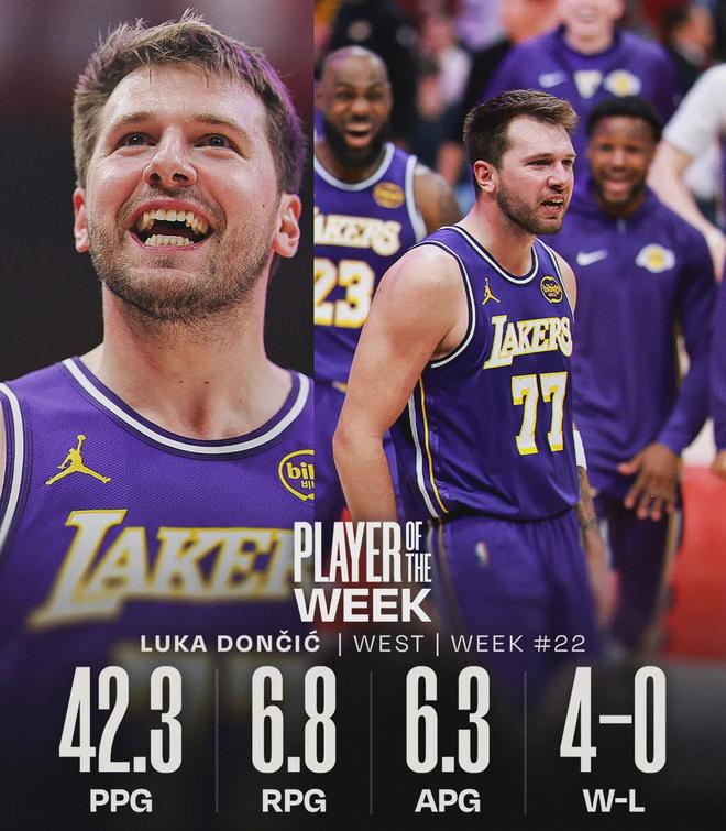 北京時間3月24日,NBA常規(guī)賽:活塞主場vs湖人。東契奇第16個技犯被撤銷,本場能夠出戰(zhàn)。此外,今天賽前NBA官方宣布:東契奇和三球當(dāng)選周最佳球員。東契奇上周場均砍下42.3分6.8籃板6.3助攻,率領(lǐng)湖人取得4勝0負(fù)。