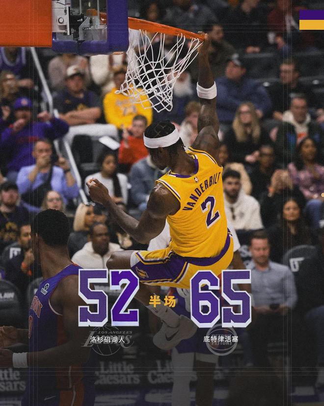 上半場打完,活塞65-52領(lǐng)先湖人13分。杜倫表現(xiàn)平平,拿到10分5籃板2失誤。活塞三分球14中7,湖人只有16中3。易邊再戰(zhàn),詹姆斯連得5分。湖人找回外線手感,單節(jié)三分8中5。短短5分多鐘,湖人轟出20-6不斷迫近分差。