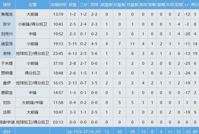 山西隊數據如下: