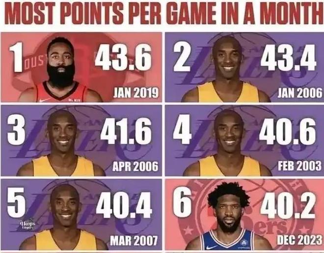 東契奇3月份的發揮堪稱現象級,場均40+的得分讓人嘆為觀止。當我們回顧歷史,結合如今東契奇的表現,我們才能發現哈登的厲害之處。時間拉回到2019年1月份哈登還在為休斯頓火箭效力,這段時間正處在哈登生涯最巔峰,19年1月哈登哈登14場比賽場均砍下43.6分8籃板6助攻,投籃命中率50%,三分命中率37%,成為NBA歷史上單月場均得分最高的球員。排在他身后的是科比2006年1月的場均43.4分、4月的41.6分,2003年2月的40.6分以及2007年3月份的40.4分,排名第六的就是2023年12月份的恩比德場均砍下40.2分!東契奇雖然打出了超級表現,但放在NBA歷史上來看,他本月的得分表現甚至進不去NBA歷史前6!看到這里我們就能明白哈登當年為我們做到了什么,也就是這個時期讓很多“登黑”轉變成了“登迷”!