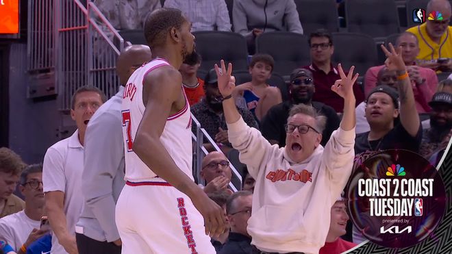 火箭隊的杜蘭特上半場得到18分、5個籃板和4次助攻,伊森得到15分;尼克斯隊的布倫森和哈特各得到7分。