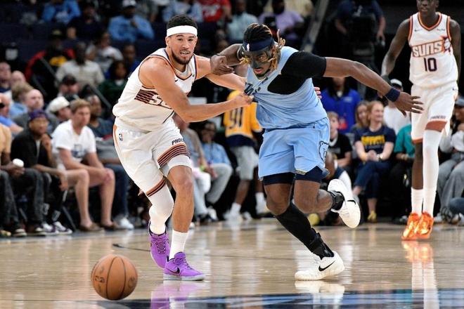 太陽(yáng)上一場(chǎng)主場(chǎng)134-109大勝爵士,灰熊上一場(chǎng)主場(chǎng)125-124險(xiǎn)勝公牛,本賽季前兩次交鋒雙方各取一勝。本場(chǎng)太陽(yáng)缺少狄龍、阿倫、馬威與科菲,灰熊缺少莫蘭特、韋爾斯、阿爾達(dá)馬等多位球員。首節(jié)開(kāi)局雙方7-7,雙方之后纏斗至太陽(yáng)14-18落后,太陽(yáng)內(nèi)外開(kāi)花一波16-2攻勢(shì)反超10分。灰熊回敬一波11-4攻勢(shì)追分,首節(jié)結(jié)束太陽(yáng)34-31領(lǐng)先灰熊。首節(jié)太陽(yáng)三分14中6,布克6中5得到12分3助攻與格林8分;灰熊三分8中3,斯潘塞8分。