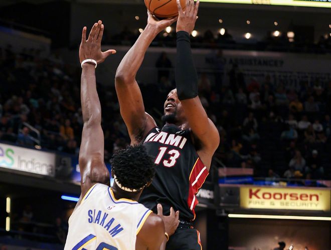 熱火上一場客場128-149輸給騎士,步行者過去兩場連續主場輸給湖人與快船遭遇2連敗,本賽季前兩次交鋒雙方各取一勝。本場熱火缺少羅齊爾與鮑威爾,步行者缺少哈利伯頓、內史密斯、祖巴茨與沃克。首節開局,熱火率先內外開花取得13-5領先優勢,熱火逐步被步行者追到僅22-21領先。雙方隨后持續交替領先緊咬比分,希羅首節11中7狂轟16分,波特也6中5轟下14分對攻,首節比賽結束熱火36-34領先步行者。