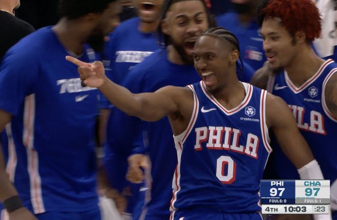 76人隊的恩比德得到29分和6個籃板,馬克西得到26分、7個籃板和8次助攻,喬治得到26分和13個籃板,埃奇庫姆得到13分和5個籃板。黃蜂隊的米勒得到29分和8個籃板,鮑爾得到20分和8次助攻,懷特得到16分和4個籃板,克尼佩爾得到11分和11個籃板,布里奇斯得到11分和6個籃板,迪亞貝特得到10分和11個籃板。