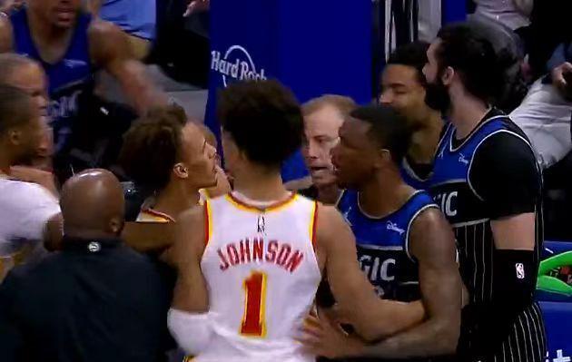 老鷹帶著26分領(lǐng)先優(yōu)勢進(jìn)入第四節(jié)比賽,由于雙方之間比分差距太大,比賽已經(jīng)提前失去勝負(fù)懸念。老鷹末節(jié)繼續(xù)保持20+領(lǐng)先優(yōu)勢,蘭代爾被比塔澤暴力拉拽崴腳下場,引發(fā)雙方爆發(fā)沖突,比塔澤二級惡意犯規(guī)被驅(qū)逐,丹尼爾斯吃T。比賽提前進(jìn)入垃圾時(shí)間,最終老鷹輕松賽季橫掃魔術(shù)。