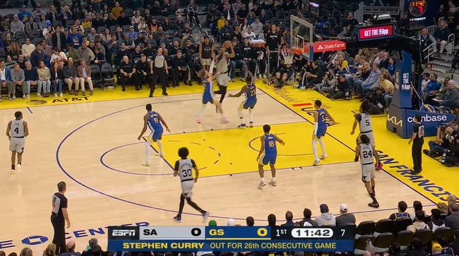 不夸張地說(shuō),文班亞馬這場(chǎng)真的打出了一種“大學(xué)生打小學(xué)生”的感覺(jué),勇士開(kāi)局外線防他的是比文班亞馬矮了30公分的波杰姆斯基和理查德,內(nèi)線站的是比文班矮25公分的追夢(mèng)格林。
