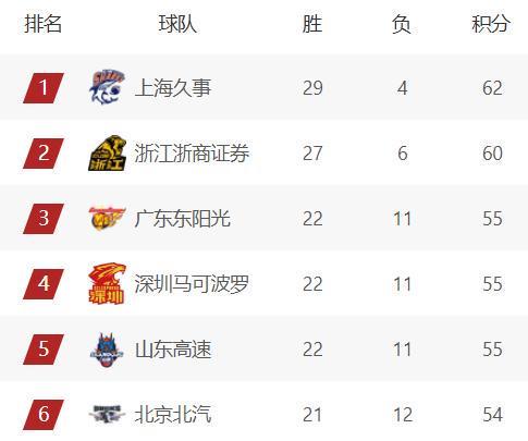 目前最新積分榜,深圳成功反超北京、山東,正式來到第四,下一輪如果廣東輸給廣廈,那么深圳就有機會殺進前三!