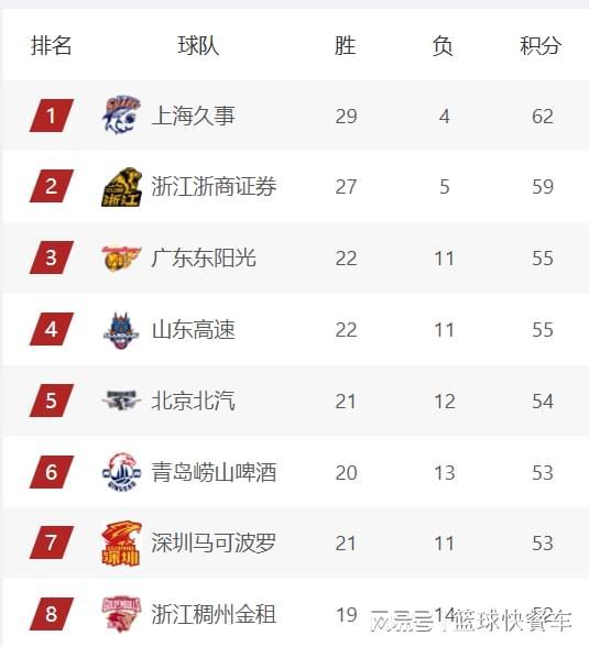 附:CBA積分榜最新排名