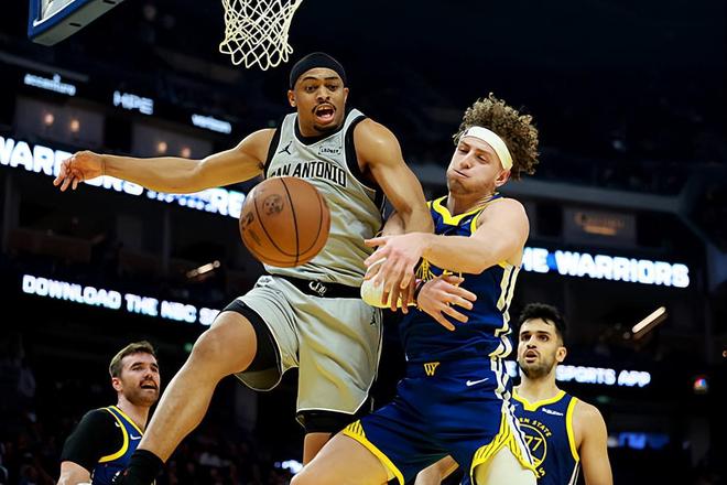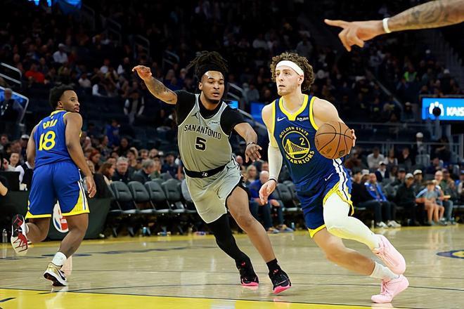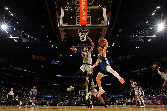本場比賽中,勇士的先發(fā)后場新星布蘭丁-波杰姆斯基(Brandin Podziemski)的表現(xiàn)還是相當(dāng)不錯(cuò)的。波杰姆斯基全場出場17分14秒,投籃8中4,三分線外5中2,罰球4中4,得到了14分6籃板5助攻的全面數(shù)據(jù),還有1次失誤和1次犯規(guī),正負(fù)值為-9。波杰姆斯基在進(jìn)攻端還是展現(xiàn)出了自己比較全面的個(gè)人能力,他在中遠(yuǎn)距離投籃方面的表現(xiàn)相當(dāng)不錯(cuò),他在傳球和組織方面也能夠起到很好的效果,他在進(jìn)攻端的功能其實(shí)非常全面。能夠在出場時(shí)間不多的情況下打出這樣的數(shù)據(jù),也絕對(duì)不是一件容易的事情。只是他在下半場比賽中幾乎沒有得到什么出場時(shí)間,這也導(dǎo)致了他的數(shù)據(jù)并不是那么突出。
