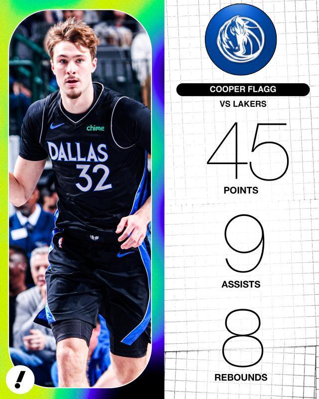 全場比賽,弗拉格轟下45分8籃板9助攻,加上此前一戰他拿到51分,連續兩戰合計96分令弗拉格成為張伯倫之后連續2場得分最高的新秀。這也是他生涯第4次40+,超越詹姆斯成為NBA歷史不滿20歲砍40+最多的球員。