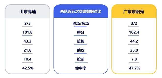 兩隊均位居聯盟前五,目前僅差一個勝場。山東隊在上一輪大比分負于寧波,本輪回到主場,相信他們會全力調整,在攻防兩端更拼、更專注。從首回合來看,廣東隊在半場領先15分后因自身松懈被山東隊反超,末節鏖戰中依靠關鍵球員的發揮才艱難取勝。二番對決,對手陣容完成補強,廣東隊在人員不齊整的情況下,需做好硬仗準備。