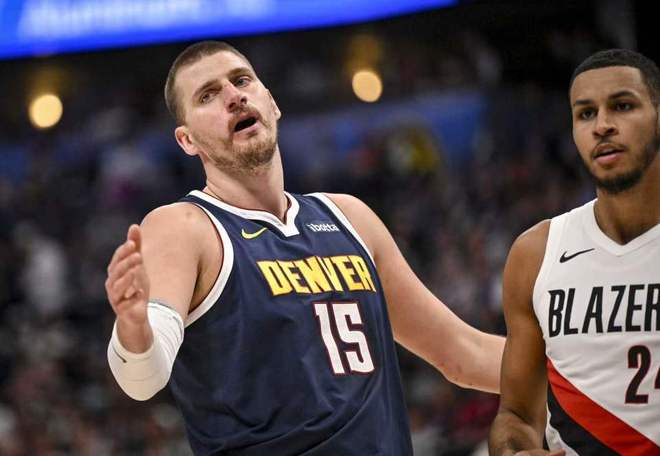 約基奇第二節5中0一分未得,掘金次節后4分鐘也一分未得,被開拓者一波17-6攻勢拉開比分。