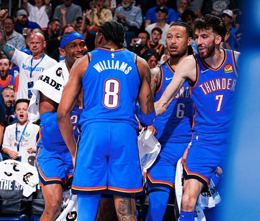 雷霆攻防兩端都有著出色的表現(xiàn),而核心亞歷山大的表現(xiàn)也非常穩(wěn)定,場(chǎng)均拿到31.4分6.5助攻,已經(jīng)連續(xù)138場(chǎng)轟下20+得分,將向著兩連MVP沖擊。杰倫·威廉姆斯則飽受傷病,目前只打了32場(chǎng),貢獻(xiàn)17分5.5助攻;好在米切爾、喬和威金斯都成長(zhǎng)起來(lái),而霍姆格倫也有17分8.8籃板1.9蓋帽。