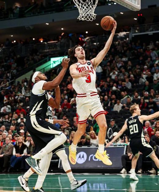 此役公牛前三節一直打得很頑強,遺憾的是,打到關鍵時刻,球隊缺少一個破壞力十足的得分強點,無法匹配字母哥的進攻。公牛全隊5人得分上雙,布澤利斯得到20分8籃板,吉迪得到16分14助攻7籃板,武契維奇得到16分6籃板,瓊斯17分,替補席的許爾特13分5助攻,蘇道姆復出替補席出戰,拿到7分。