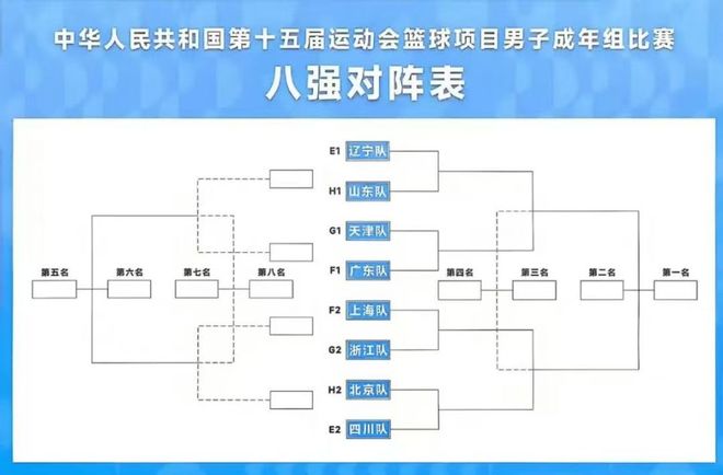 全運會男籃的8強已經確定,分別是廣東隊、四川隊、遼寧隊、浙江隊、山東隊、北京隊、上海隊和天津隊,河南隊在小組賽取得了2勝2負的戰績,但是無緣進入8強非常的可惜。根據規則,3個小組的前兩名,還有成績最好的2個第三名進入決賽。根據抽簽結果顯示:四分之一決賽是廣東隊vs天津隊、遼寧隊vs山東隊、四川隊vs北京隊、浙江隊vs上海隊。