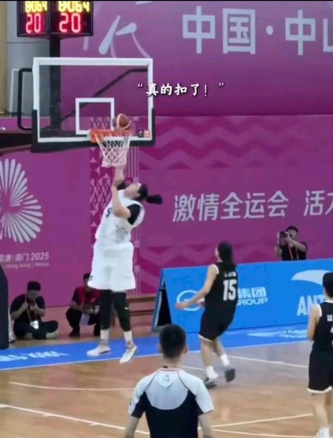 動作不算炸裂,甚至難以稱之為爆扣,落地也略顯謹慎,但這一扣,讓全場瞬間沸騰。裁判忘了吹哨,隊友忘了回防,連對手都停下腳步。這不是娛樂性質的全明星花活,而是正規比賽里的實戰扣籃,中國女籃史上第一次。