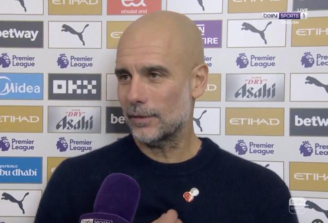 英超第11輪,曼城主場3-0大勝利物浦,賽后,瓜迪奧拉接受了拜因體育的采訪。
