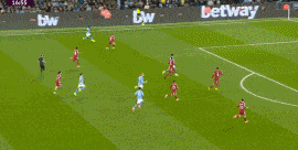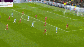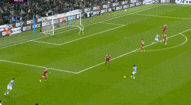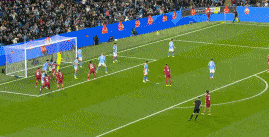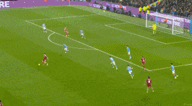 半場補時第2分鐘,岡薩雷斯中路拿球突施冷箭遠射,打在范戴克身上反彈破門,曼城2-0利物浦。