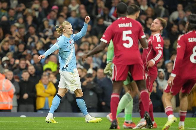 第28分鐘,努內斯右路傳到禁區(qū)后點,哈蘭德力壓科納特頭球破門,曼城1-0利物浦。這是哈蘭德本賽季英超11輪14球,英超生涯總進球數來到99粒。