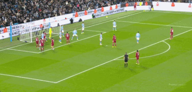 開場之后,曼城的攻勢很猛,持續(xù)沖擊利物浦的后防線,不到10分鐘獲得點球資格。