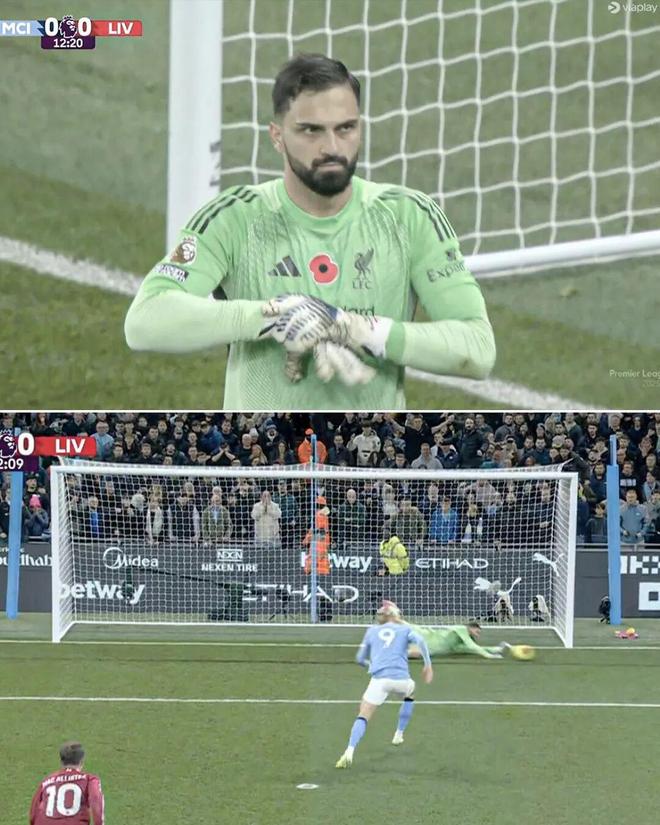 上半場第12分鐘,多庫突入禁區造點,裁判在經過VAR回放之后,判罰點球,可惜哈蘭德主罰的點球被利物浦門將撲出。