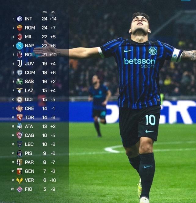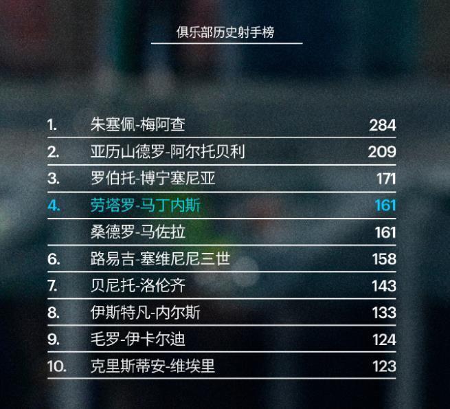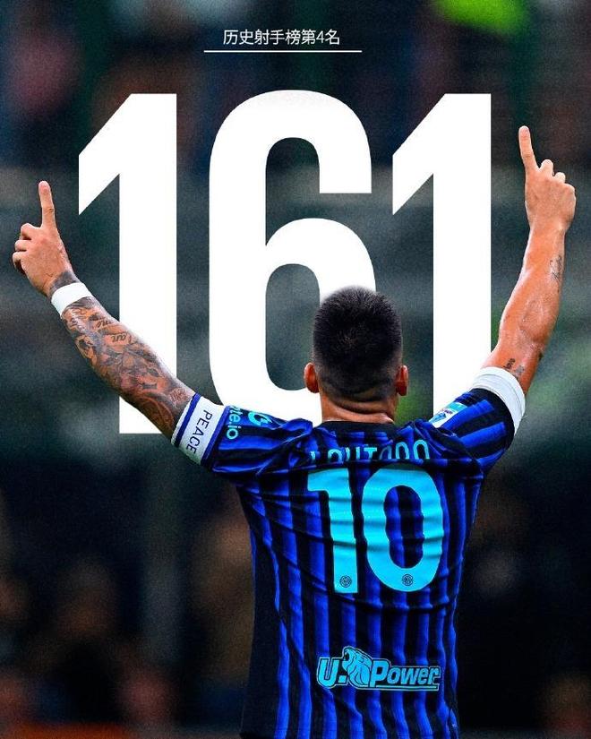 本場比賽的進球,也讓勞塔羅的藍黑軍團生涯進球總數來到161球,國米隊長與藍黑名宿馬佐拉一起,目前并列位居國米隊史第四射手的寶座。這位阿根廷射手,正用一個個進球,一步步將自己鑄就成為俱樂部的活傳奇。