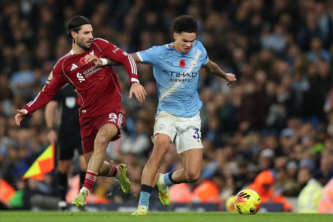 因?yàn)椋藨?zhàn)斯洛特在戰(zhàn)術(shù)上被瓜迪奧拉完爆,前場一個(gè)多庫攪亂整條防線,后場一個(gè)奧賴?yán)i死薩拉赫。半場補(bǔ)時(shí)階段,已經(jīng)漸入佳境的尼科禁區(qū)弧頂大力抽射,皮球擊中倒霉的范戴克后變線入網(wǎng)。