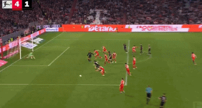比賽最后時刻,門興通過定位球扳回一城。施特格爾傳中,基亞羅迪亞射門擊中立柱,穆赫亞補射得手,將比分改寫為1-4。