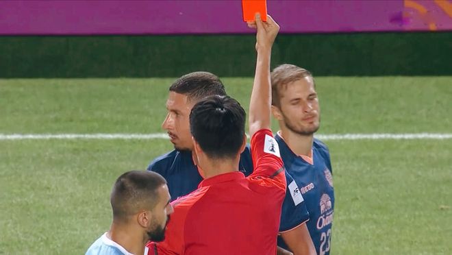 兩隊從比賽開始,就展開了激烈的對抗。客場作戰(zhàn)的墨爾本城,進攻端保持的積極主動,頻頻向武里南聯(lián)的禁區(qū)發(fā)起沖擊。羅伯特祖伊惡意犯規(guī),并且伴有明顯的踩踏動作,引發(fā)了雙方大規(guī)模的沖突!裁判直接將羅伯特紅牌罰下!