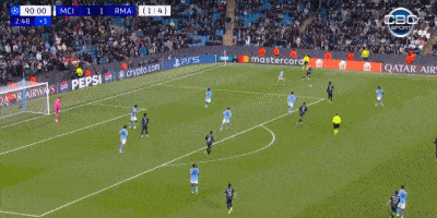 到第93分鐘,維尼修斯自己在門前完成了包抄破門,就此皇馬2-1曼城,比賽完結(jié)。