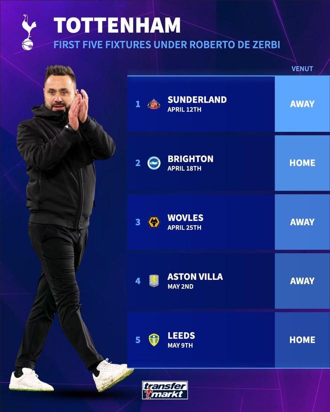 而熱刺本賽季剩余的7個對手分別是桑德蘭、布萊頓、狼隊、維拉、利茲聯、切爾西和埃弗頓。