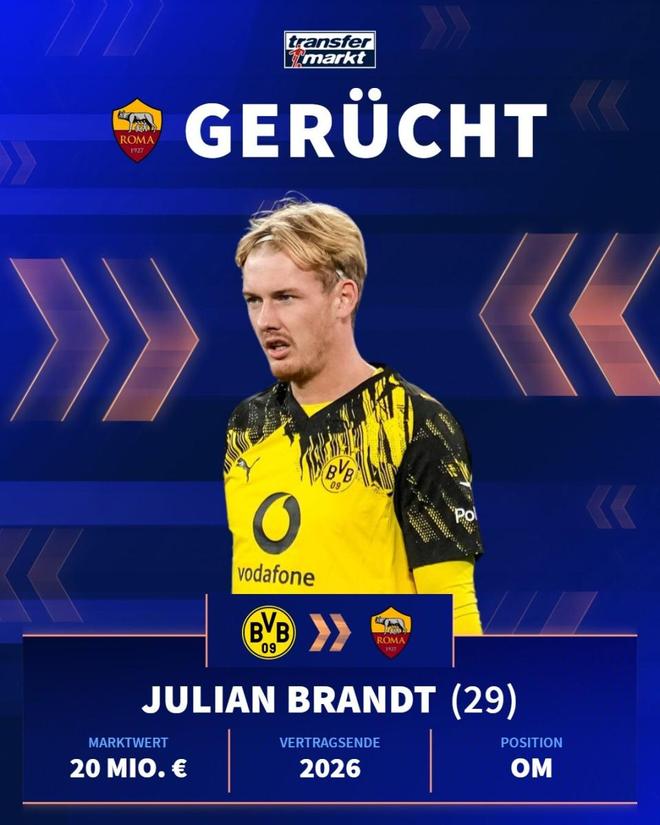 29布蘭特與多特蒙德的合同將在今夏到期,而球員本人已經(jīng)確認不會續(xù)約。這意味著,這位在德甲征戰(zhàn)多年的攻擊手,將以自由身進入轉(zhuǎn)會市場。在如今動輒上億轉(zhuǎn)會費的時代,一名擁有國家隊履歷、歐冠經(jīng)驗且仍處當打之年的攻擊型中場可以零成本簽下,這樣的機會本就極為罕見。