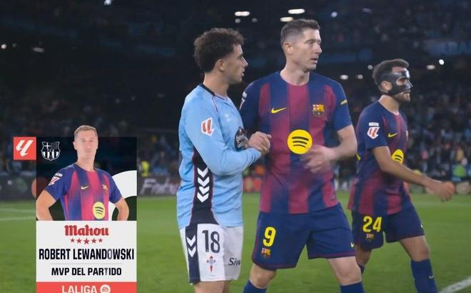 官方消息,萊萬多夫斯基當選塞爾塔對陣巴塞羅那一役全場最佳。