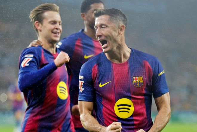 巴薩則征服了客場,以4-2擊敗了塞爾塔。巴薩的比賽因?yàn)楦ダ锟说募みM(jìn)戰(zhàn)術(shù),總是那么刺激。這場比賽巴薩在第10分鐘就取得了進(jìn)球。萊萬多夫斯基點(diǎn)射破門。但很快卡雷拉就幫助塞爾塔扳平比分。之后萊萬多夫斯基再次進(jìn)球。伊格萊西亞斯迅速扳平比分。半場臨近結(jié)束亞馬爾推射破門讓巴薩再度領(lǐng)先。下半場萊萬多夫斯基頭球破門完成戴帽,把最終的比分定格為4-2。巴薩的防守還是那么差,幸好有足夠犀利的進(jìn)攻,才贏下這場比賽。