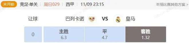 本場比賽市場方面給出皇馬客讓4-5檔起步,目前數據變化不大。皇馬實力方面要比巴列卡諾更好,之前皇馬在聯賽中客場面對巴列卡諾是3-4檔讓步位置。皇馬本賽季客場面對赫塔菲是5檔讓步,巴列卡諾本賽季發揮和定位都要比赫塔菲更好。皇馬和巴列卡諾都是雙線作戰,皇馬消耗更大一些。本場比賽皇馬客場讓步算是比較強勢,看好皇馬在客場贏球。