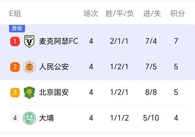 隨著第4輪的結束,E組最新積分榜也發生變化,此前排名墊底的國安,取勝之后積分來到5分,追平了人民公安隊,小組賽還有最后兩輪,希望北京國安再接再厲,一舉出線!