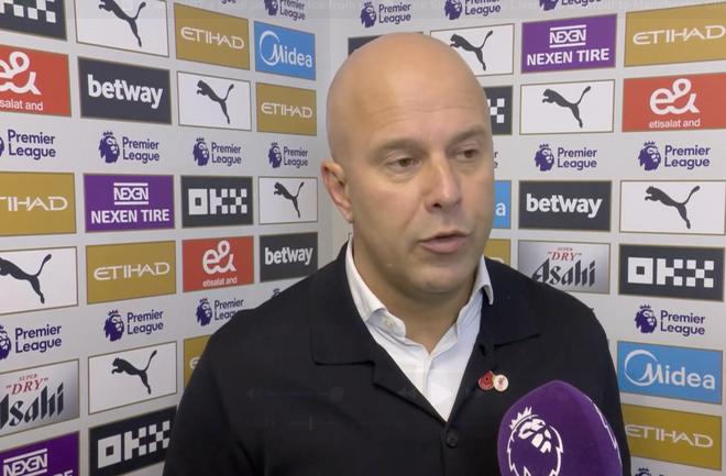 英超第11輪,利物浦客場0-3不敵曼城,賽后,紅軍主帥斯洛特接受了英超官方的采訪。他表示上半場0-2是合理的結果,但他不同意范戴克進球被吹的那次判罰,此外,斯洛特還表示曼城上賽季對狼隊打入了一粒類似的進球,被認定有效。